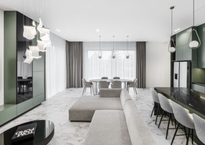7. Žalias itališkas veliuras ant elektrinio bėgelio miegamajame