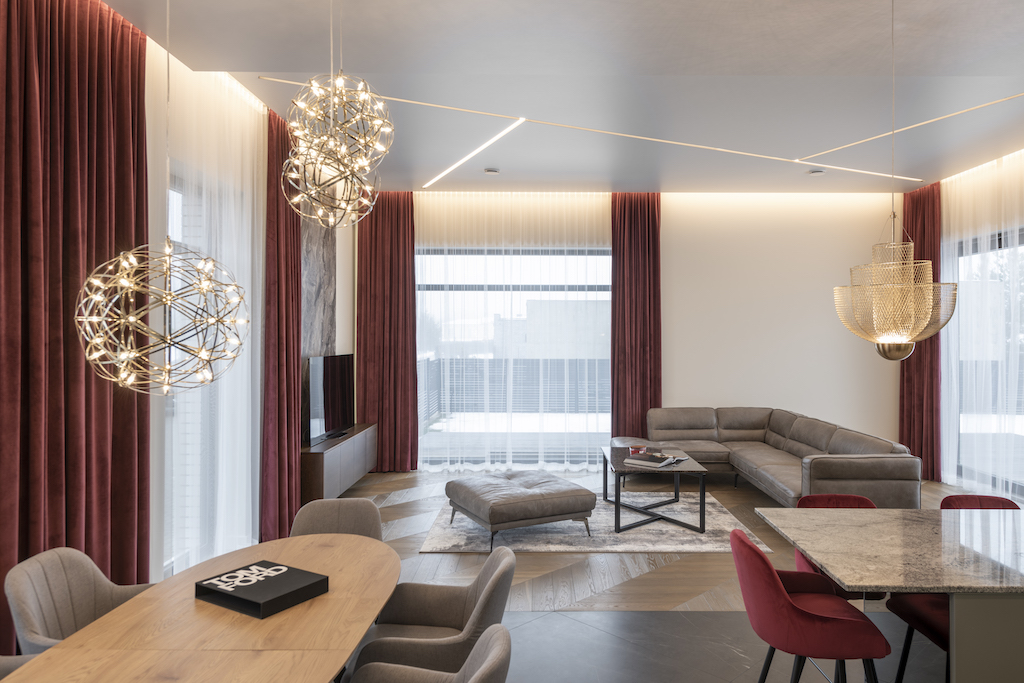 10. Veliuro užuolaidos su lengvu šilko vualiu , elektriniai karnizai