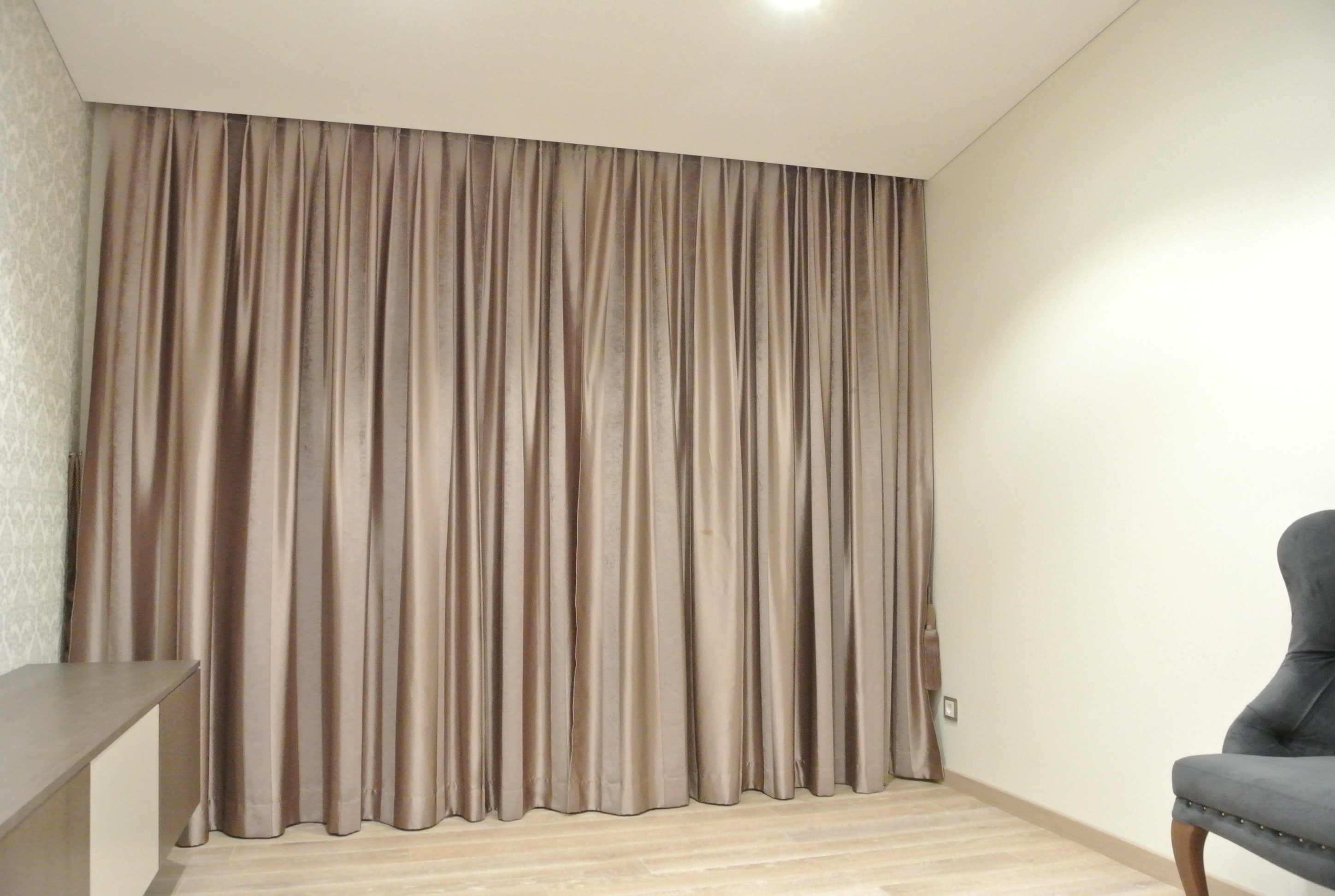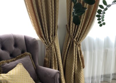 9. Veliurinės užuolaidos su šilko vualiu , elektriniai karnizai